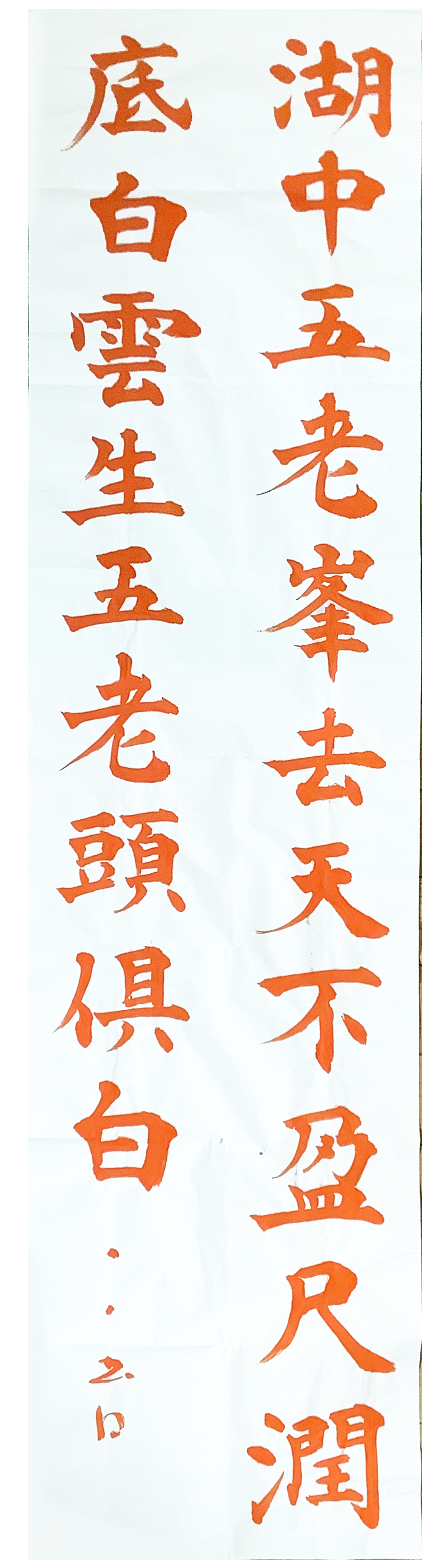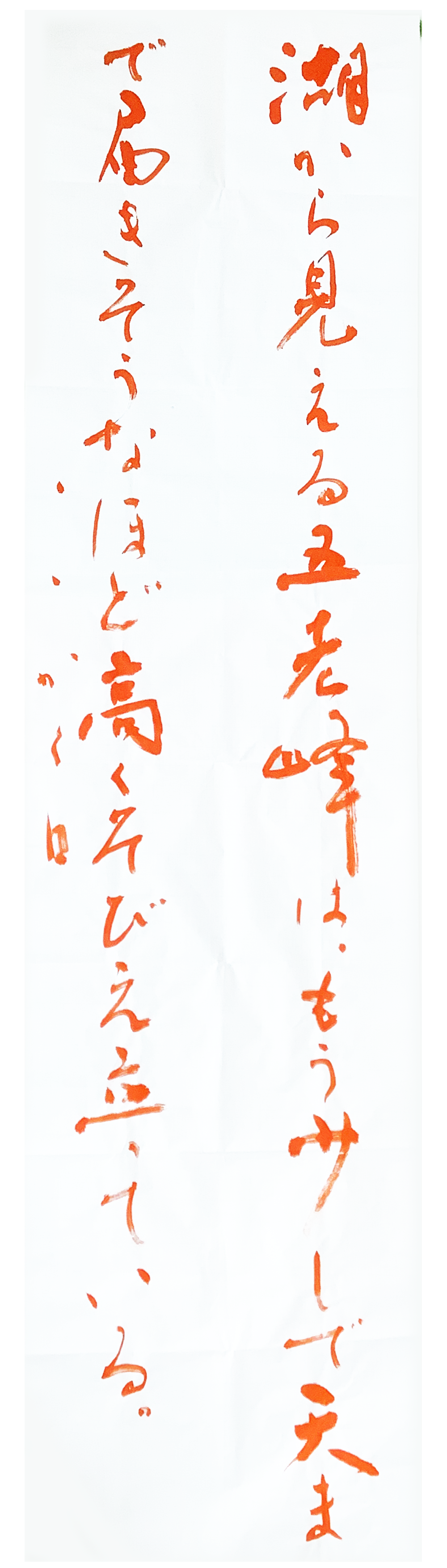 湖中五老峯 去天不盈尺(かくせいいいきし) 澗底白曇生 五老頭倶白(郭正域詩) 湖から見える五老峰は、もう少しで天まで届きそうなほど高くそびえ立っている。(漢字かな交じり) |