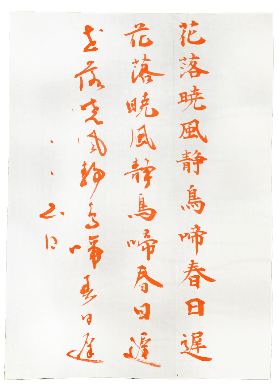 門開日影來 一片蒼苔色 花氣引遊人 山風吹未息(査応光詩-さおうこうし-)